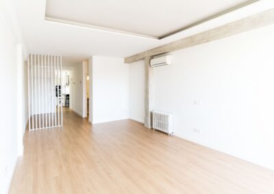 Rehabilitación completa de vivienda para uso de alquiler en la cual se redistribuyeron todos los espacios y se reubicaron las instalaciones creando un espacio general versátil y adaptable a muchas tipologías de los futuros inquilinos.